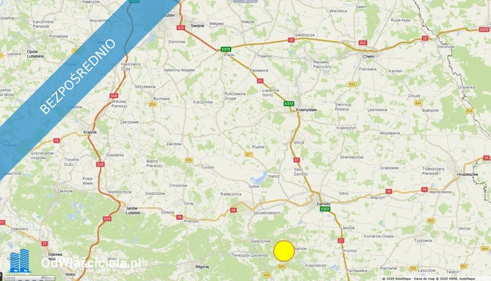- odległości od większych miast: Zamość – ok. 30 km, Lublin – 110 km
